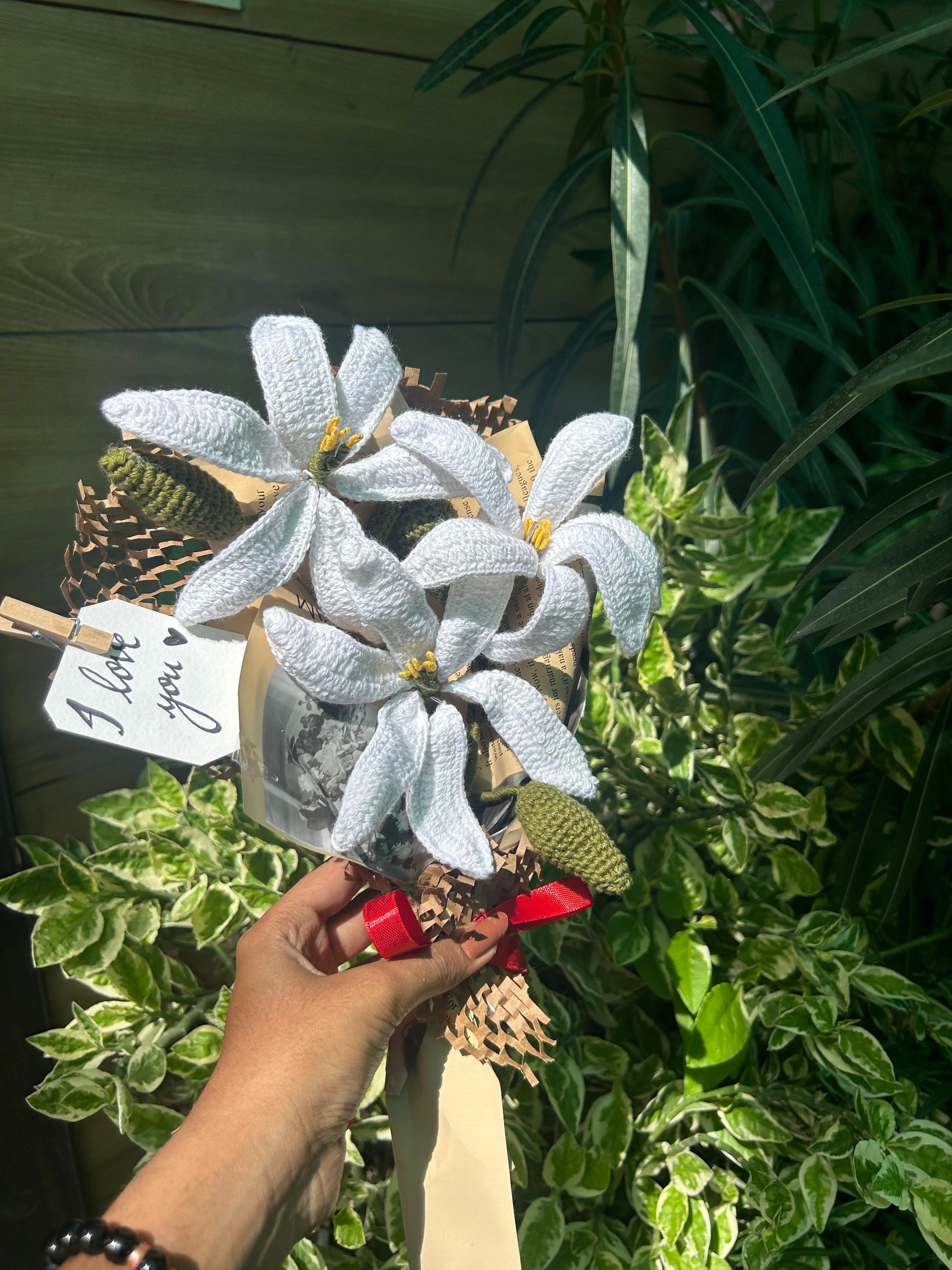 Elegant, pure, and timeless – our Crochet Lily Bouquet is a handmade expression of love and serenity. Each lily is delicately crafted to capture the natural beauty of this classic bloom, symbolizing purity, devotion, and grace. ✨