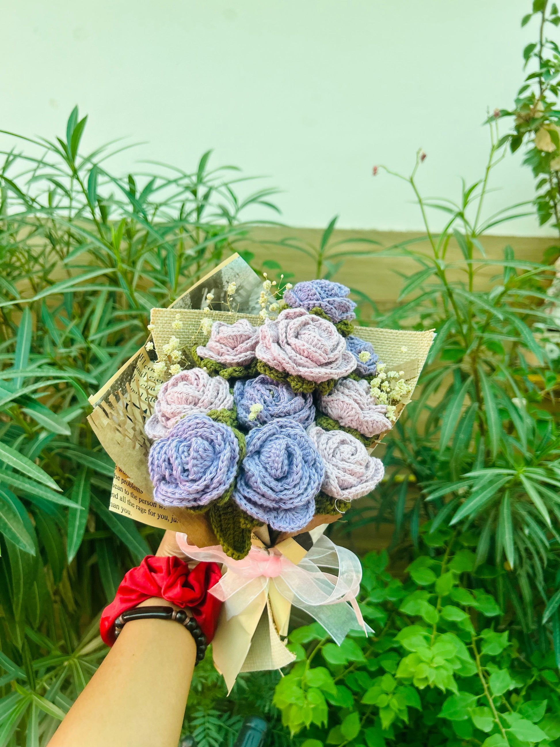 Unlike real flowers, these roses never wither – making them a timeless keepsake for anniversaries, birthdays, proposals, or simply to remind someone how much they mean to you. Every rose is crocheted with care, bringing together the elegance of pink with the depth of purple – a bouquet that’s as unique as your bond. 💜💗